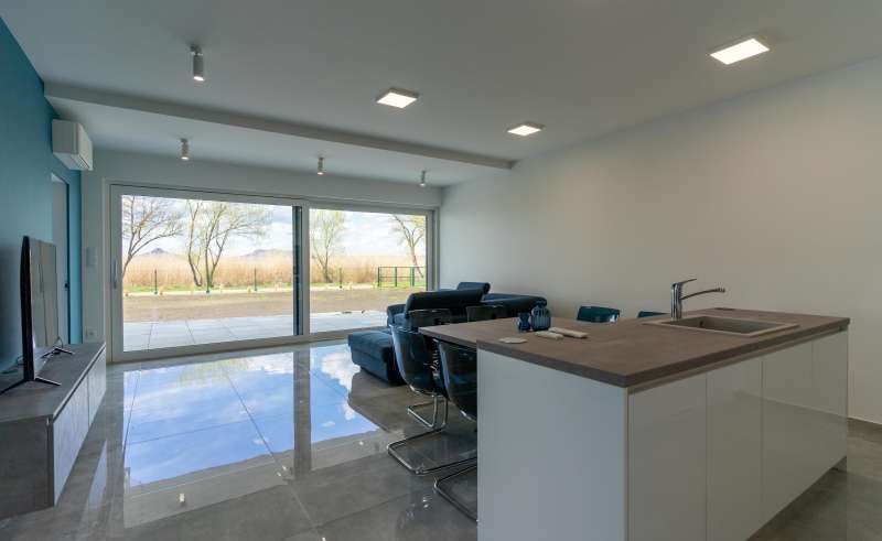 A Fonyódi árpád-parti sétány mellett található apartmanunk nagy kerttel várja vendégeit, amely a Balaton partján ér véget. A lakás 3 hálószobával és két fürdőszobával áll maximum 6 fő rendelkezésére, minden helysége légkondicionálóval rendelkezik (a lakás területe 93 m2 plusz 30m2 terasz). Jól felszerelt amerikai konyhás nappali, ahol mindent megtalál, ami szükséges lehet. A saját kert tökéletes játszania gyerekeknek, vagy egyéb kikapcsolódásra. A kertkaputól csak pár lépés a Balaton. A városközpont 1km-re található ahol megtalálható a kikötő és számos vendéglátóhely.